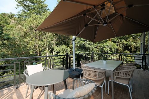 高級大理石戶外桌,無論是用餐、下午茶、露天火鍋烤肉,甚至開會,都別有一番風情。這是陽光房專屬露台,歡迎前來體驗我們最獨特的住房空間。